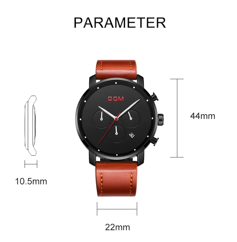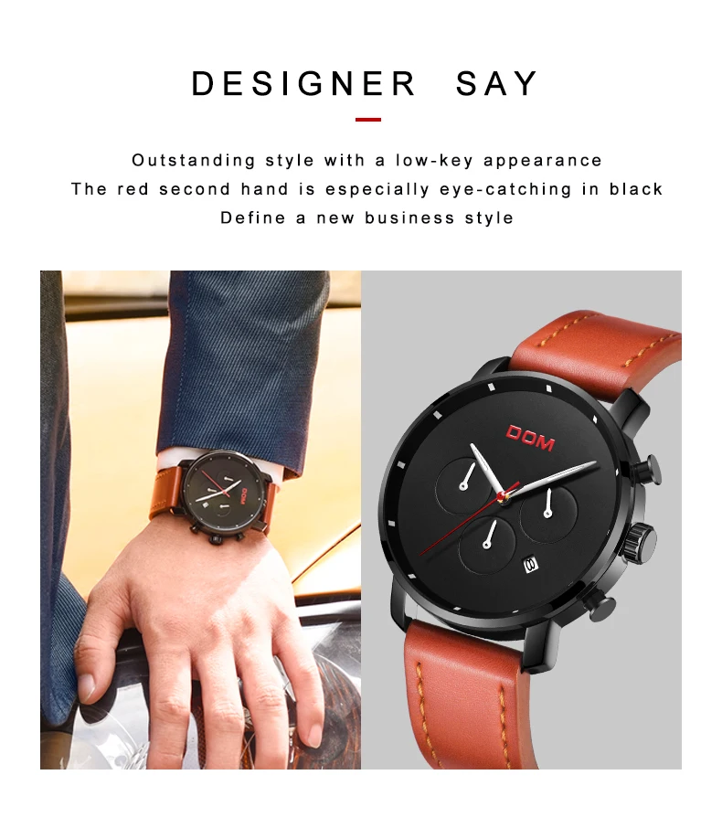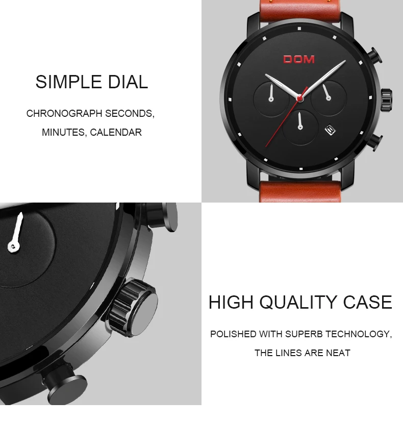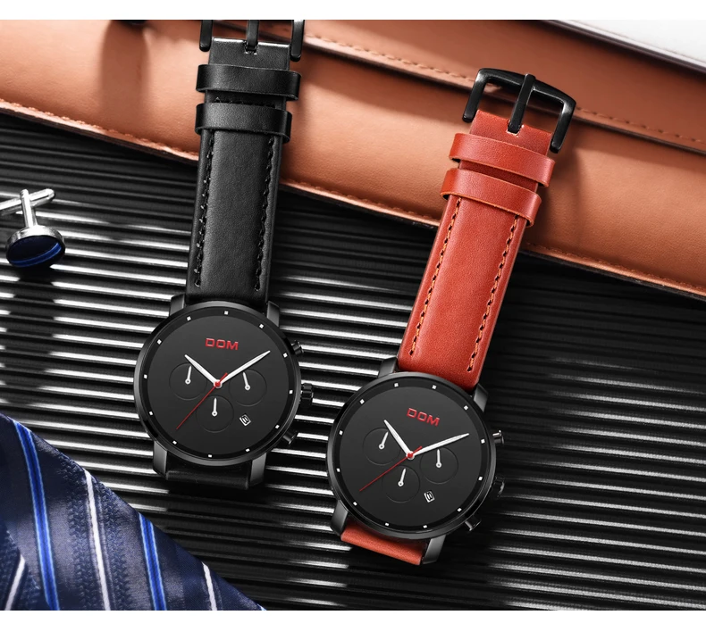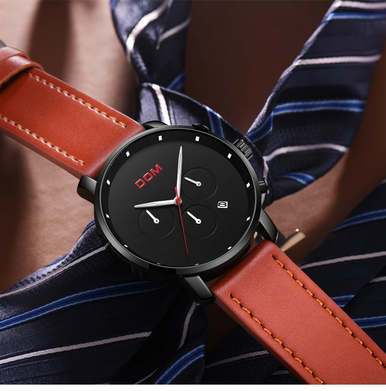 Мужские минималистичные тонкие повседневные кварцевые часы DOM из нержавеющей стали, спортивные военные мужские наручные часы с кожаным ремешком