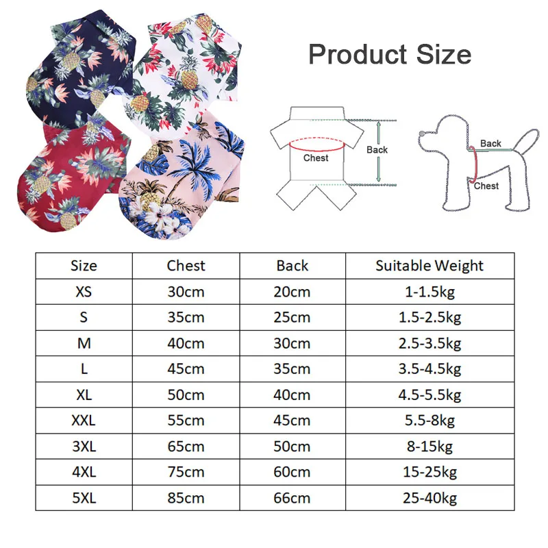 XS-5XL летние пляжные рубашки для собак Милая Гавайская одежда для ...
