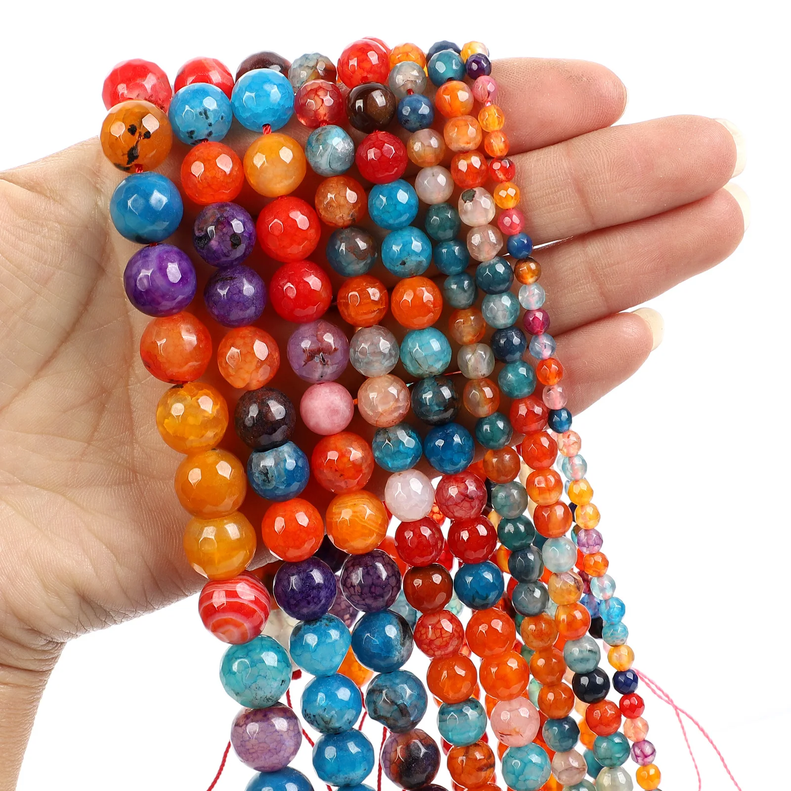 Бусины из натурального камня с разрезанной поверхностью, цветные прозрачные Агатовые Бусины россыпью для изготовления ювелирных изделий, рукоделия, браслетов, нитка 4-12 мм