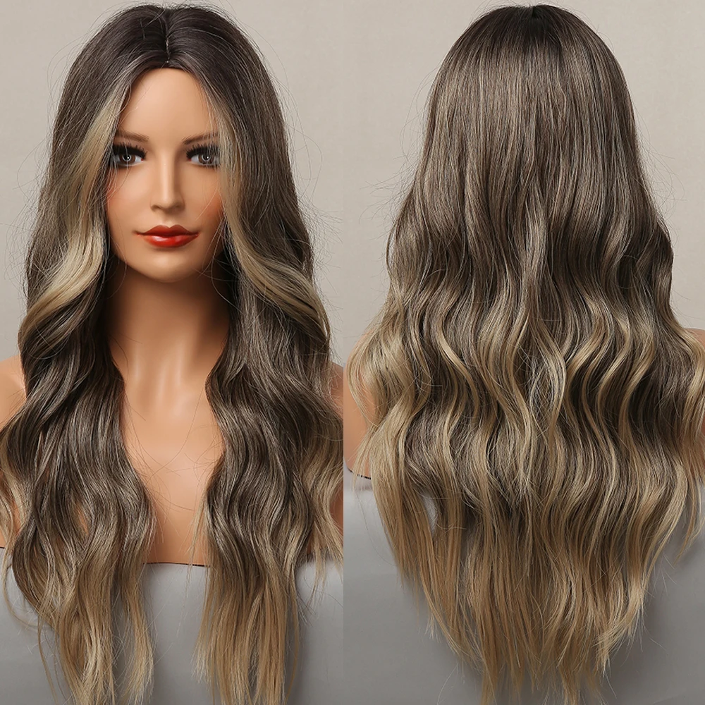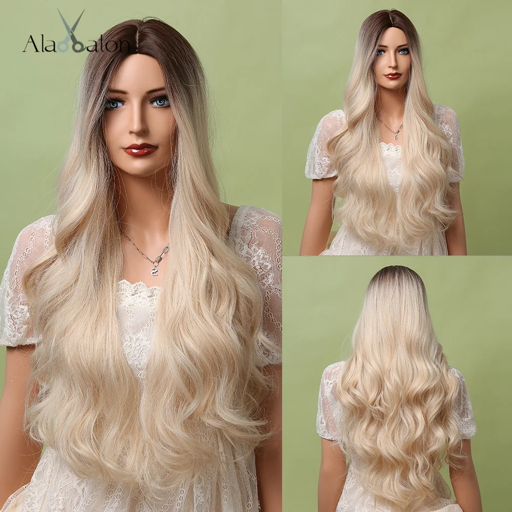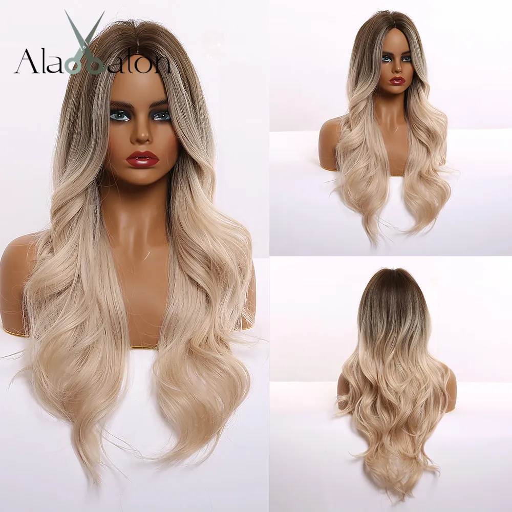 36467296000284922ALAN EATON, длинные волнистые парики с Омбре, коричневые, светлые, синтетические парики, средняя часть, парики для черных женщин, термостойкие волокна, вечерние парики для косплея