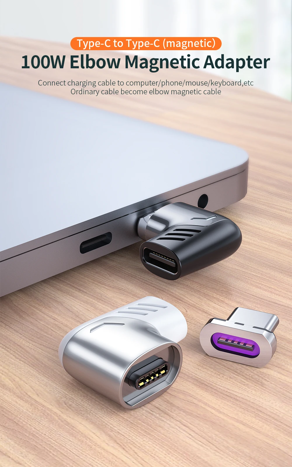 Магнитный Кабель-адаптер 100 Вт Usb C на Type C, быстрая зарядка, магнитный преобразователь с прямым углом Usb Type C для Mackbook Pro, Huawei, iPhone
