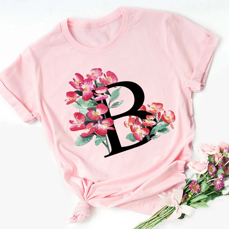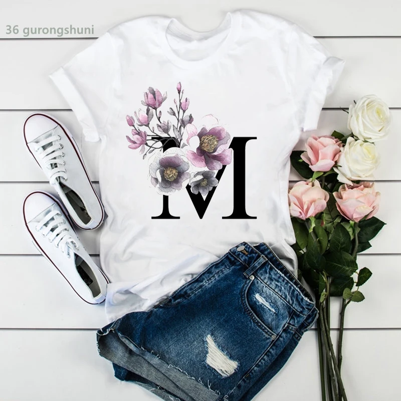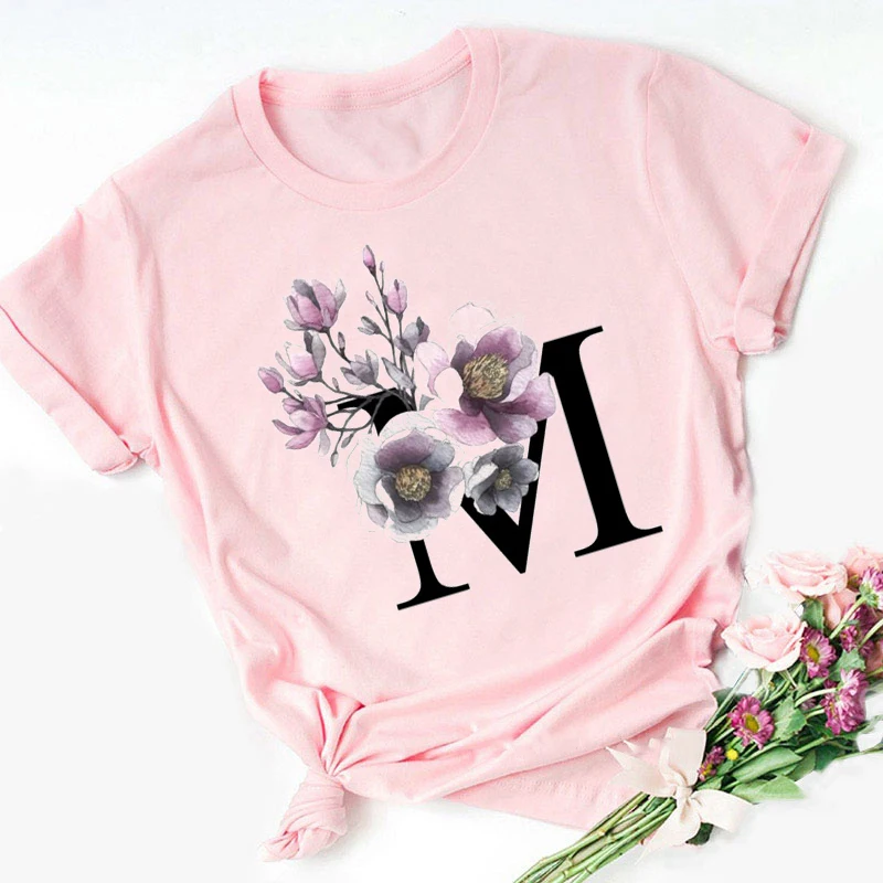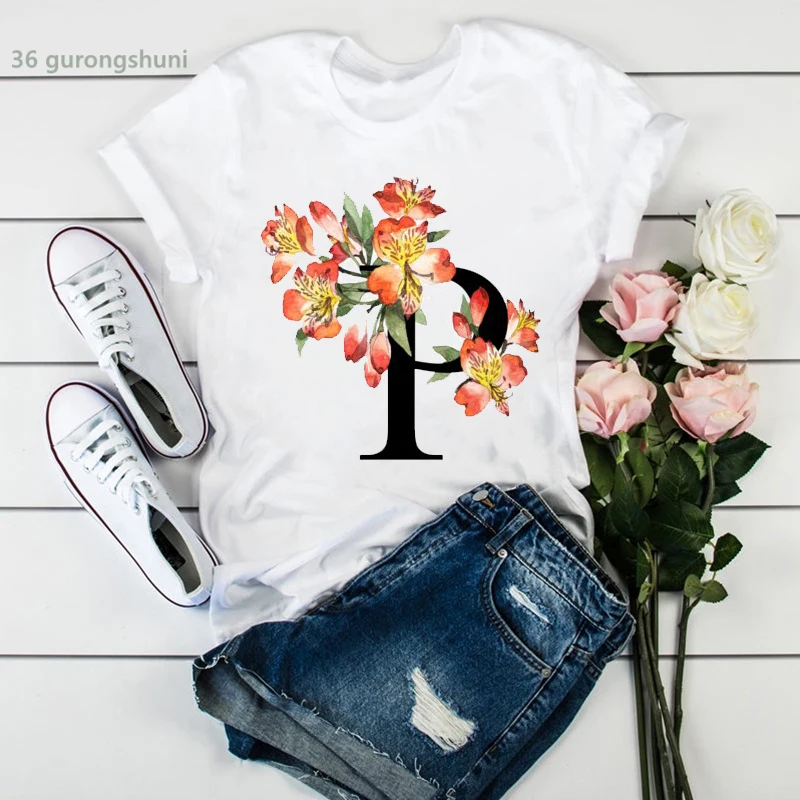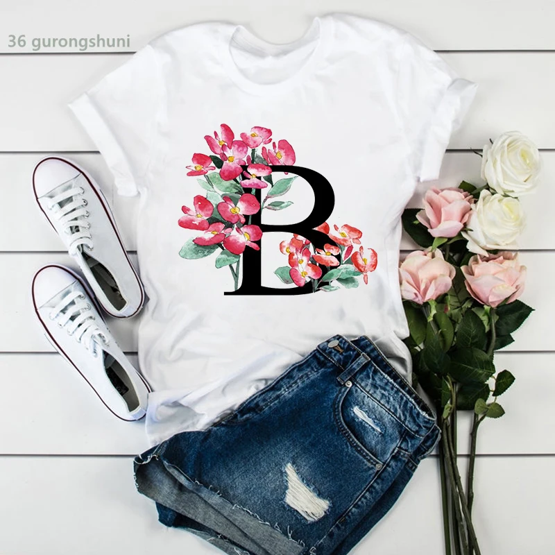 Женская футболка с принтом растений и букв, летняя футболка в стиле Харадзюку 90-х, одежда в Корейском стиле, Белые и розовые Топы