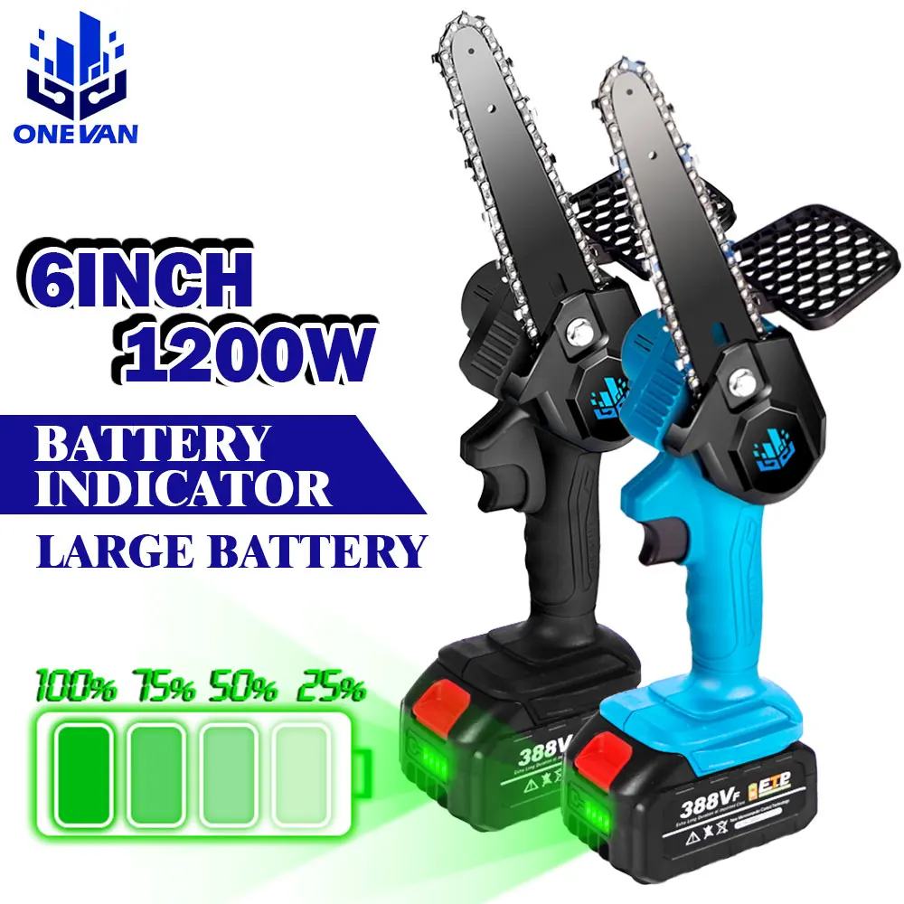 Электрическая цепная пила, мини-инструмент для деревообработки, 1200 Вт, 6 дюймов, 18 в, с индикатором заряда батареи
