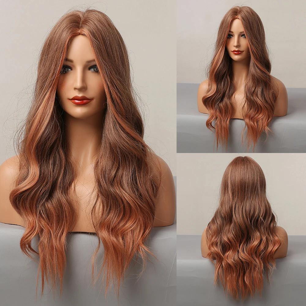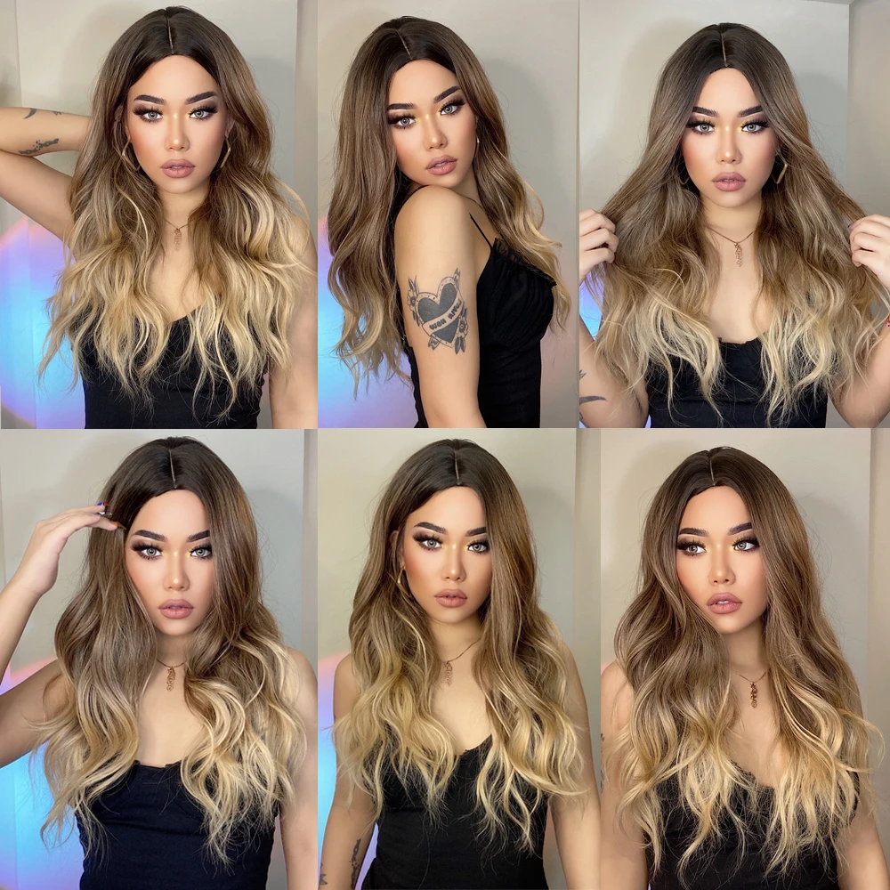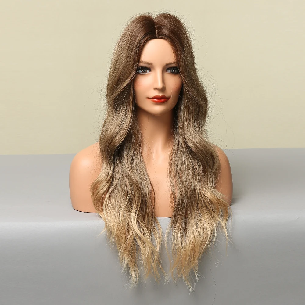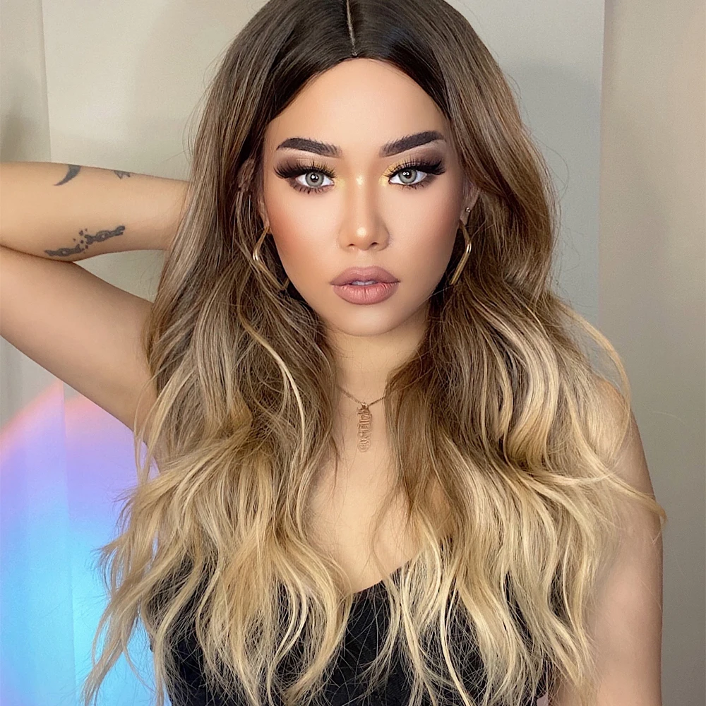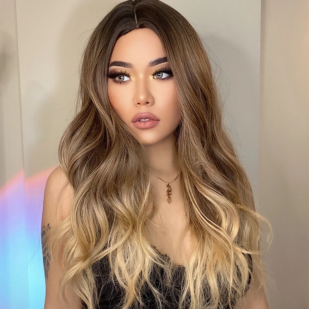 Длинный волнистый синтетический парик GEMMA с эффектом омбре, черный, коричневый, золотой, светлый, натуральный, средняя часть, термостойкие волосы, парики для чернокожих женщин, афро