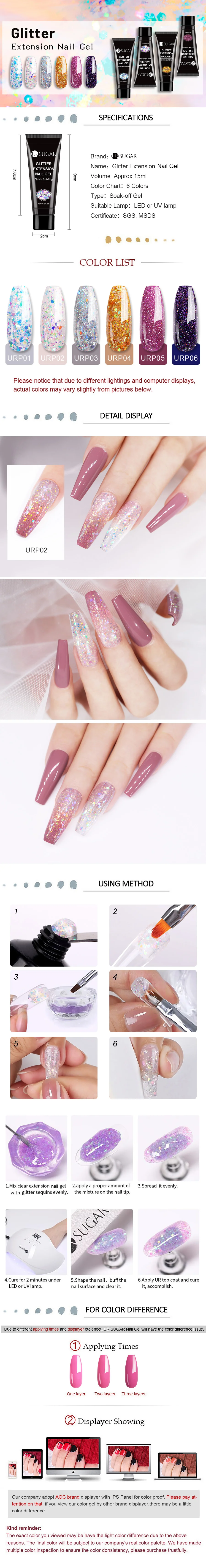 UR SUGAR 15 мл набор гель для наращивания ногтей Блестящий Быстрый акриловый гель для наращивания ногтей все для дизайна ногтей