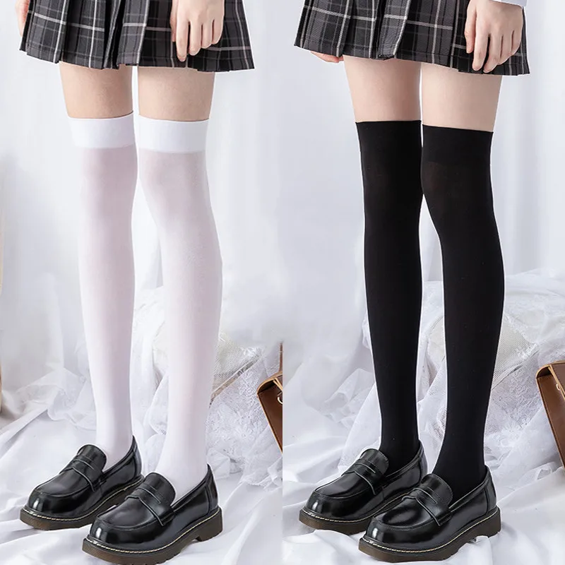 Гольфы женские, черные, белые, в полоску, выше колена