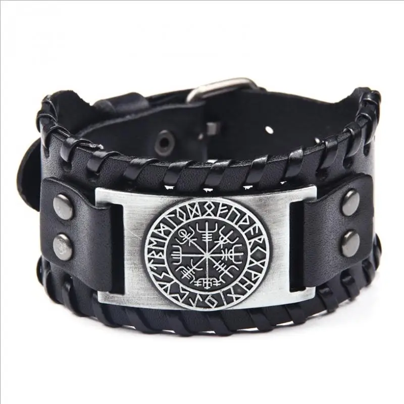 Браслет на запястье с руническим компасом, кожаный браслет ручной р...