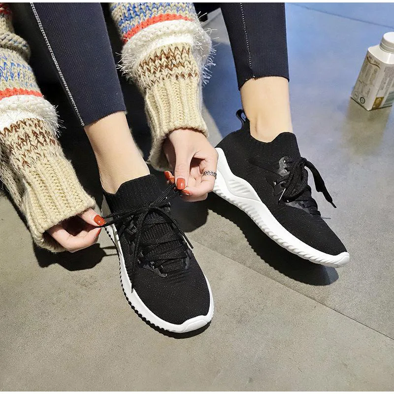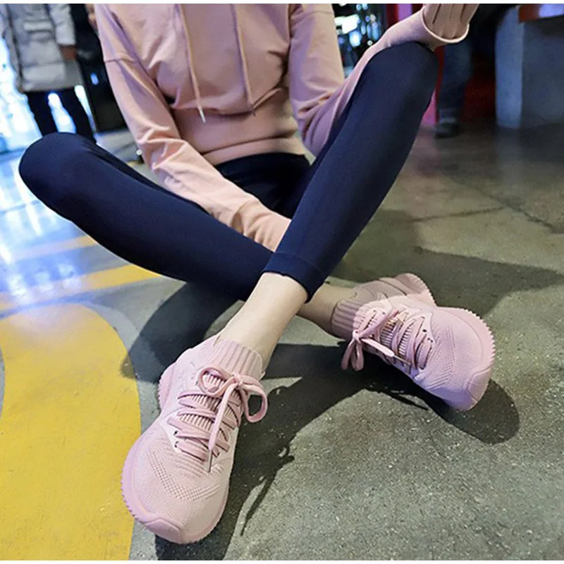 Вулканизированная обувь; Сезон осень; Женские кроссовки; 2021Мягкая Повседневная трикотажная женская обувь на плоской подошве со шнуровкой; Удобная прогулочная обувь; Весенняя обувь