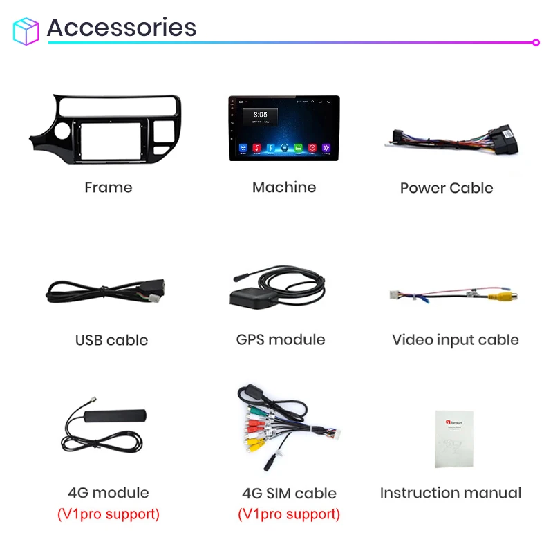 > Функция Junsun V1 для Kia RIO 4 K3 2015 - 20179-дюймовый 2.5D емкостный сенсорный экран + 1,2 ГГц четырехъядерный процессор + DDR3 1 GB (2 GB опционально) Flash + 16 Гб памяти (32 Гб опционально) + Встроенный Wi-Fi (сеть 4 Гб опционально) + gps-навигация (Обновление карты, только поддержка бренда Junsun) + Управление рулем + зеркальное отображение + Bluetooth + Встроенный микрофон + FM / AM + RDS (опционально) + Поддержка функции USB ADAS DVR + Функция Europe DAB + 1080P Vedio Play + HD 1024*600 + Система контроля давления шины> Язык экранного менюРусский, английский, испанский, итальянский, французский, немецкий, китайский, эстонский, польский, филиппинский, финский, корейский, голландский, хорватский, латышский, литовский, румынский, норвежский, португальский, японский, шведский, тайский, турецкий, украинский, венгерский.> 24 ч * 7 сервисная поддержкаВ Junsun Наша цель-продолжать усердно работать, чтобы создать инновационное автомобильное мультимедийное радио оборудование и программное обеспечение, которое дает вам личный контакт.Мы предоставляем бесплатные обновления для прошивки, программного обеспечения, gps-навигационных карт.