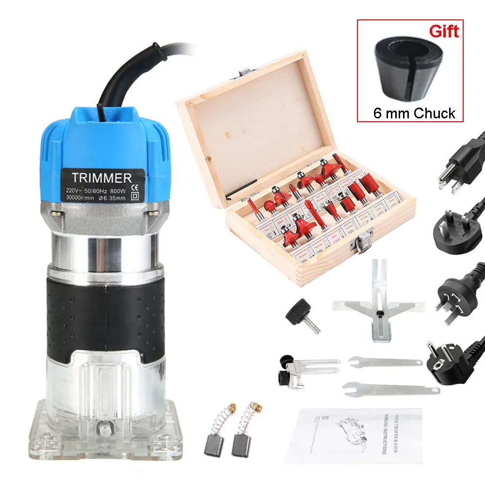 800 Вт 30000 об/мин деревообрабатывающий инструмент комбо набор электрических деревообрабатывающих станков механические столярные ручные триммеры инструменты с фрезерным резаком