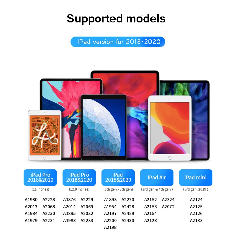 Уважаемые покупатели, Здравствуйте:(Пожалуйста, проверьте номер модели на задней панели вашего iPad)Разработан Apple в callforniaсобранный в Китае Модель: A1980 Сделано в Китае портативный компьютер серийный: DMPXN1QCKD6KУбедитесь, что вышеуказанные модели являются распространенными, другие модели недействительны, и модель может быть подтверждена на задней панели устройства iPad. Уважаемый клиент, вы также можете проконсультироваться с онлайн-службой поддержки клиентов, чтобы узнать о используемых моделях.