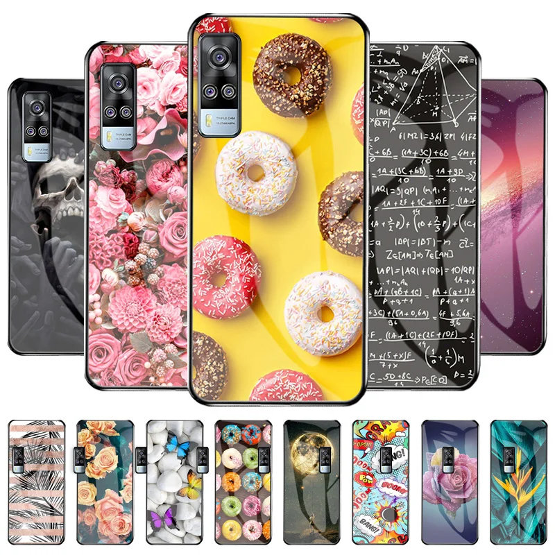 Чехол для Vivo Y31 Y51 2020 закаленное Стекло ТПУ Цветы Чехол для т...
