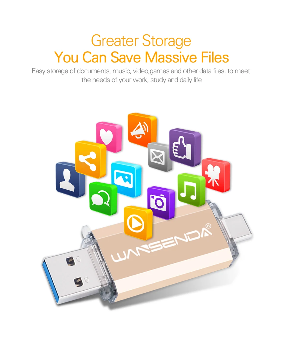 Новый Wansenda Тип C USB флэш-накопитель 128 ГБ Высокое Скорость OTG флеш-накопитель 32 Гб 64 Гб 256 ГБ 512 ГБ USB 3,0 на флэшке, Бесплатная доставка флэш-карта памяти