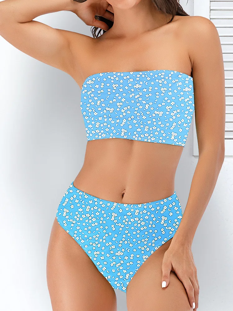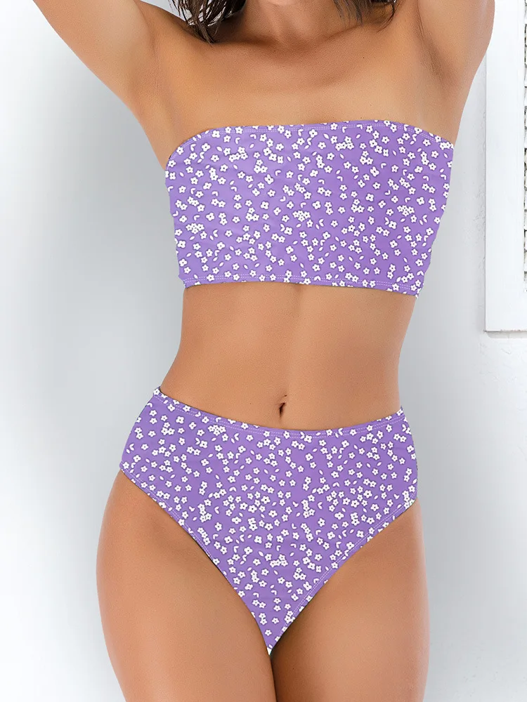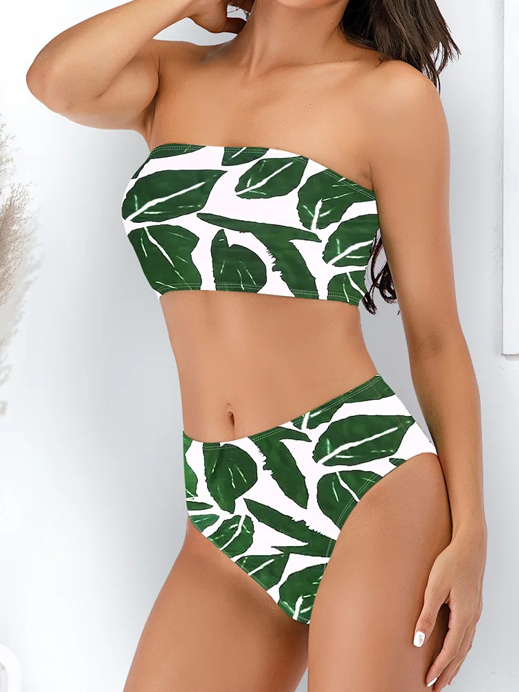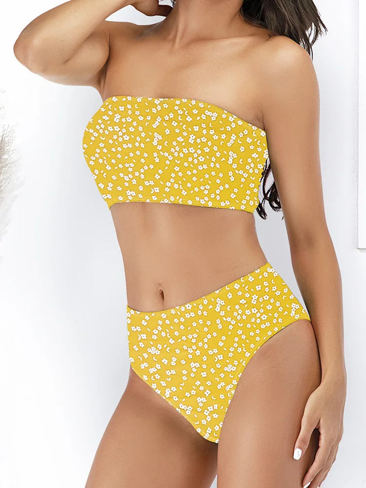 Комплект из 2 предметов, без лямок, бикини, для женщин, купальники с открытыми плечами Высокая Талия ванный комплект High Cut Женский на бретельках, с подкладкой, купальник