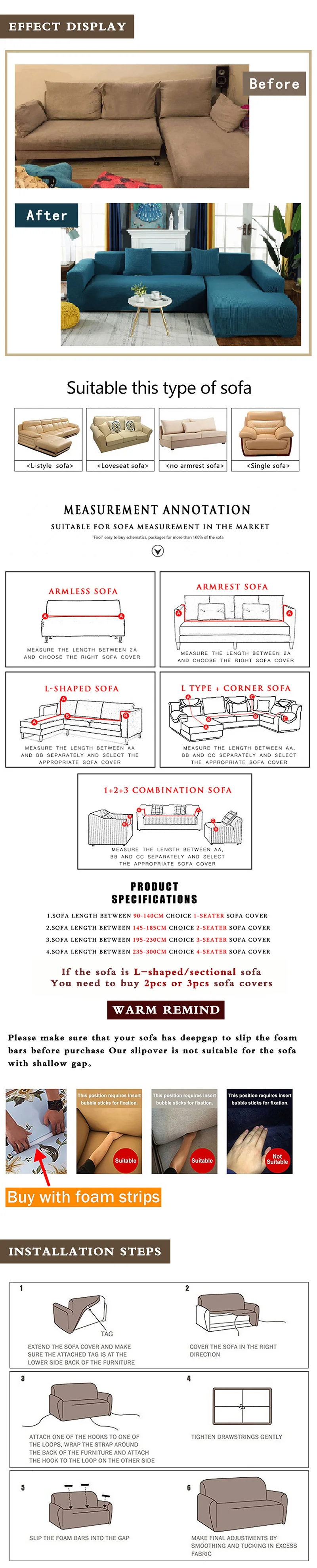 Чехол для дивана, жаккардовый, однотонный, эластичный, L-образный
