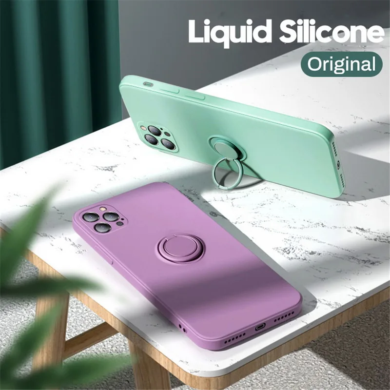Мягкий чехол для iPhone 11, 12, 13 Pro Max, XR, XS Max, SE2, 7, 8, 6, 6S Plus, 13 Pro, с магнитным кольцом-держателем