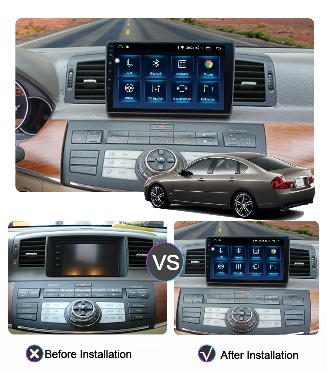 Автомобильный мультимедийный плеер, для NISSAN FUGA 2005-2010, Android 10 AI Voice 8 Core 6 + 128G, Gps, Wi-Fi, 4G, радио, Android