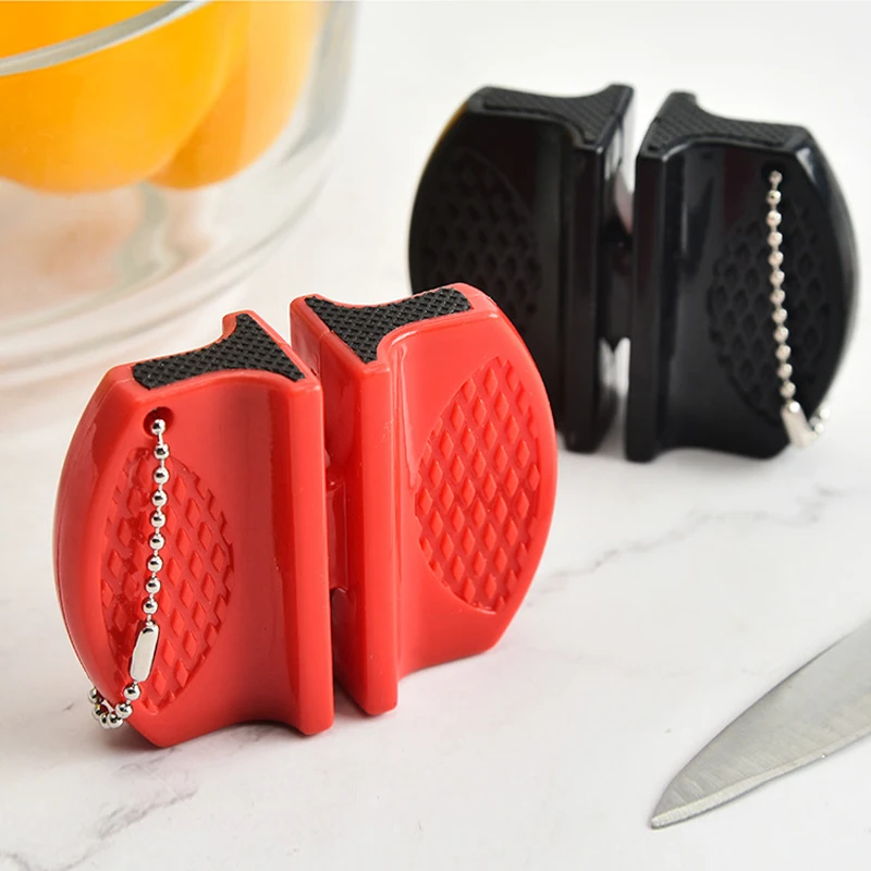 1-2 шт. портативная мини-точилка для ножа Двухступенчатая Керамическая точилка, точильный камень из вольфрамовой стали с цепью, кухонные инструменты для кемпинга