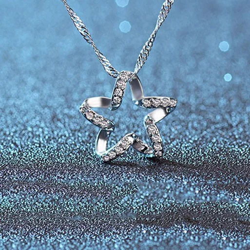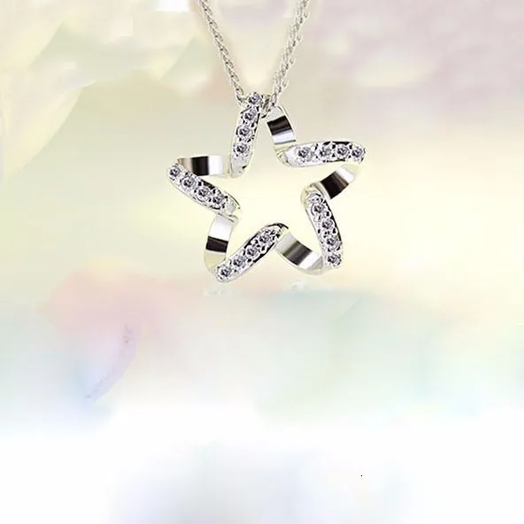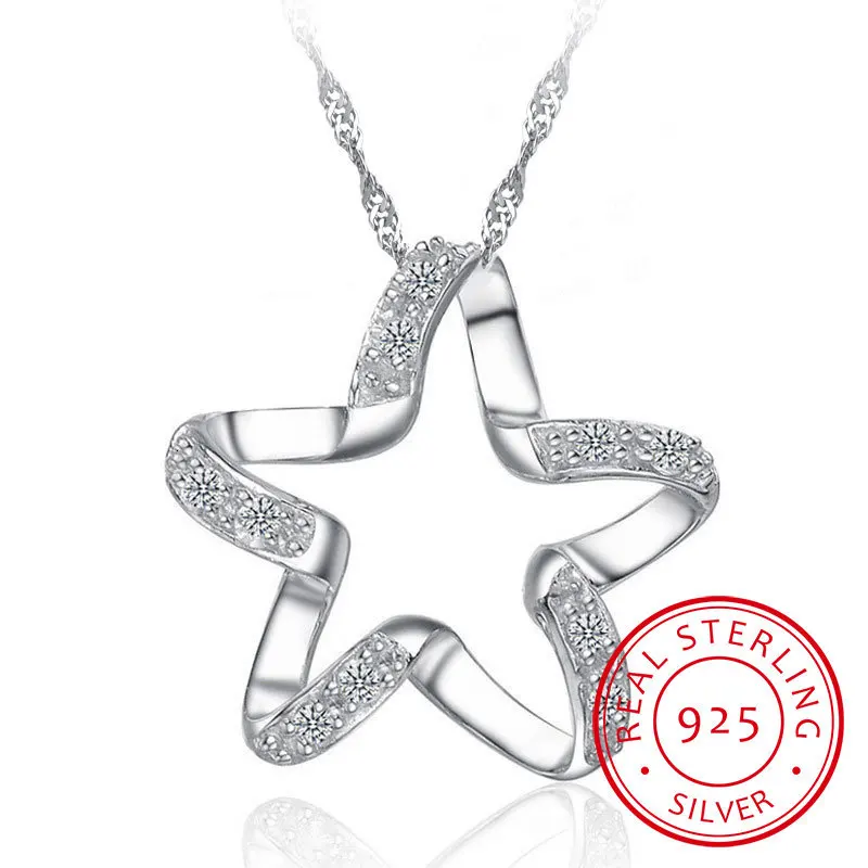 925 стерлингового серебра с рисунком пятиконечной звезды с квадратными кристаллами циркония, кулон ожерелье мода звезды Cz ювелирные изделия для юбилей подарок