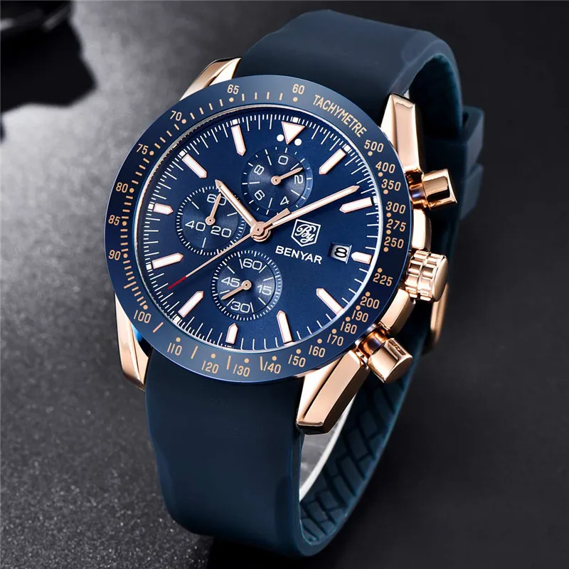 Часы BENYAR 2021 Мужские кварцевые, брендовые Роскошные деловые ста...