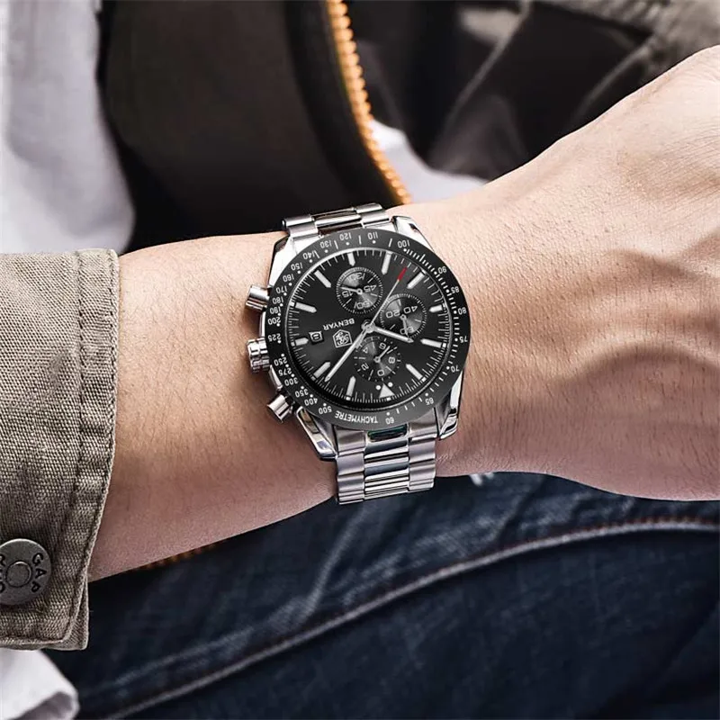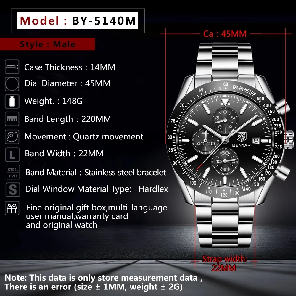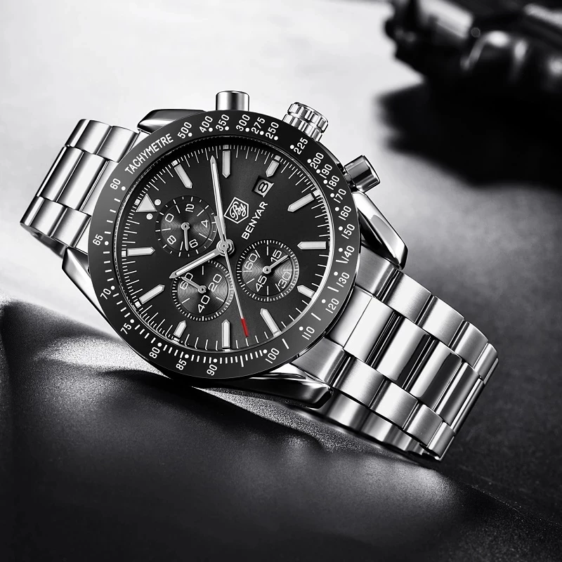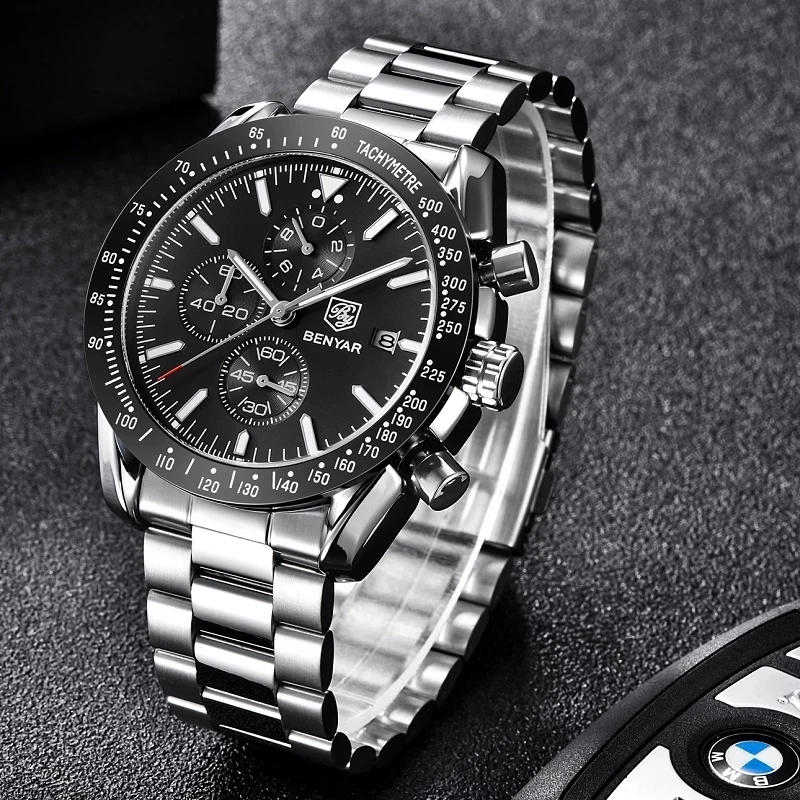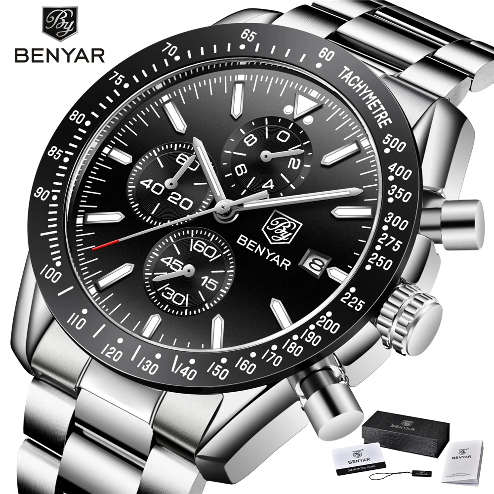 Часы наручные BENYAR Мужские кварцевые, роскошные брендовые деловые водонепроницаемые, с браслетом из нержавеющей стали, 2021