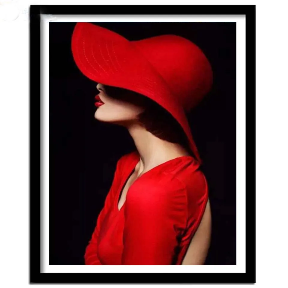 Алмазная вышивка 5D Сделай Сам Алмазная Краски ing мозаика Сексуальная красная шляпа для девочек Краски по номерам Вышивка крестом полная круглая, квадратная дрель