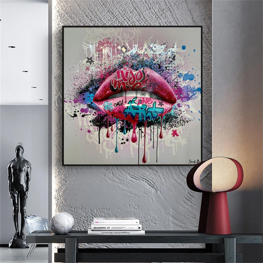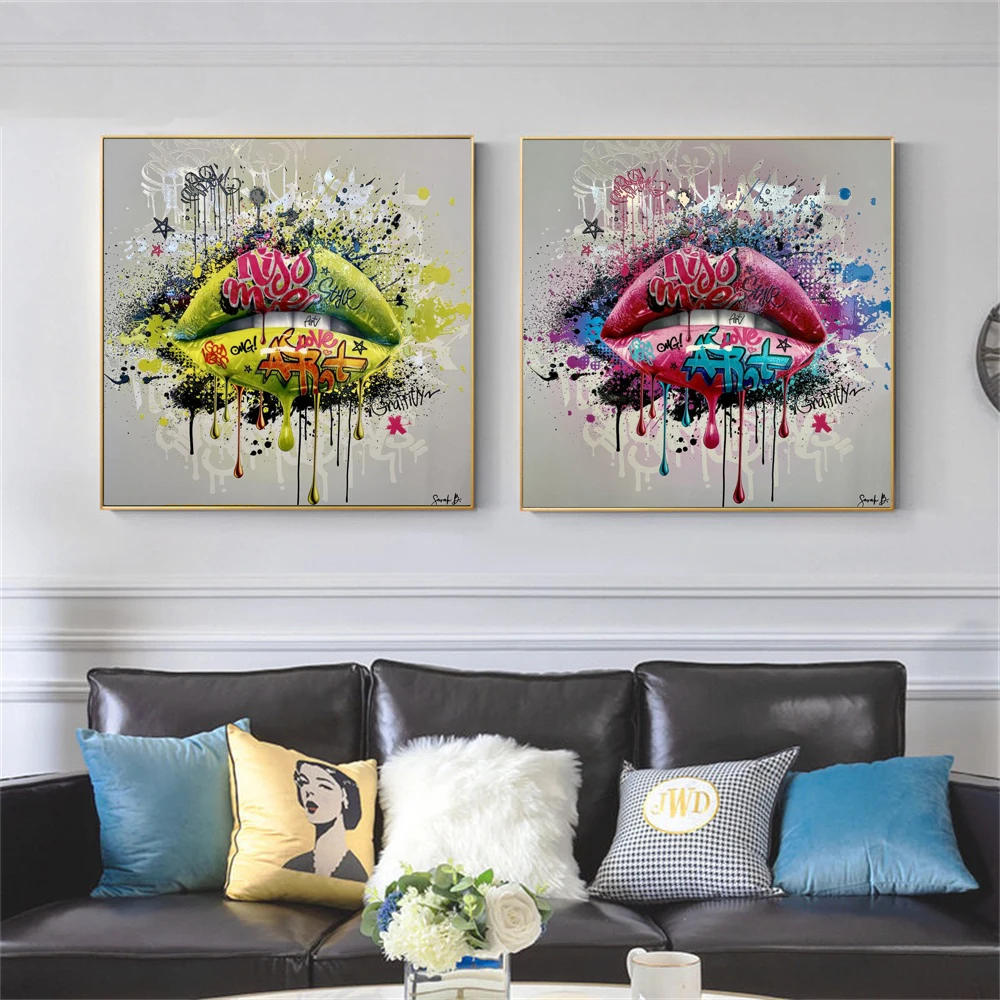 Абстрактные граффити красочные средства ухода за губами Плакаты и принты настенный художественный холст для живописи; Цвет желтый, розовый; Губы картинки для Декор в гостиную