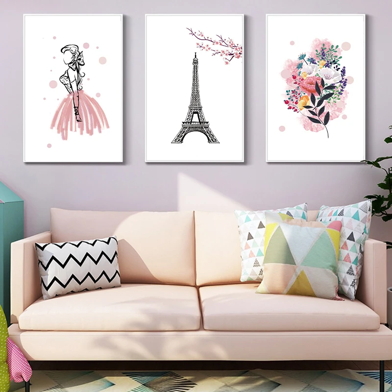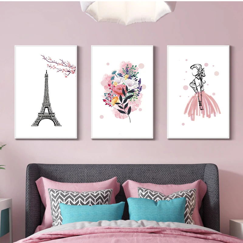 Постер с изображением розовой Эйфелевой башни в скандинавском стиле