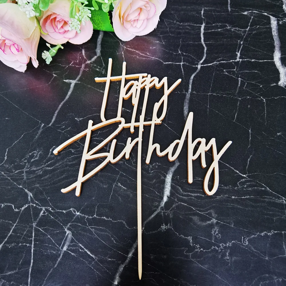 Деревянный акриловый Топпер для торта «С Днем Рождения» зеркальный розовый серебряный золотой черный белый Топпер для торта «С Днем Рождения» вечерние принадлежности
