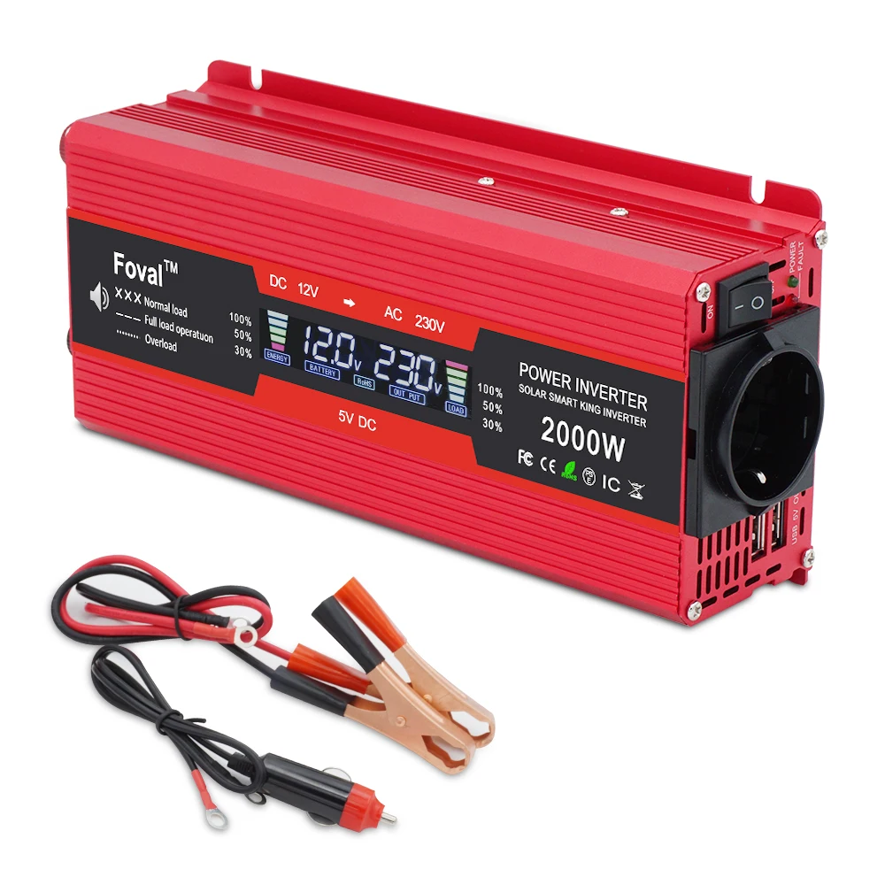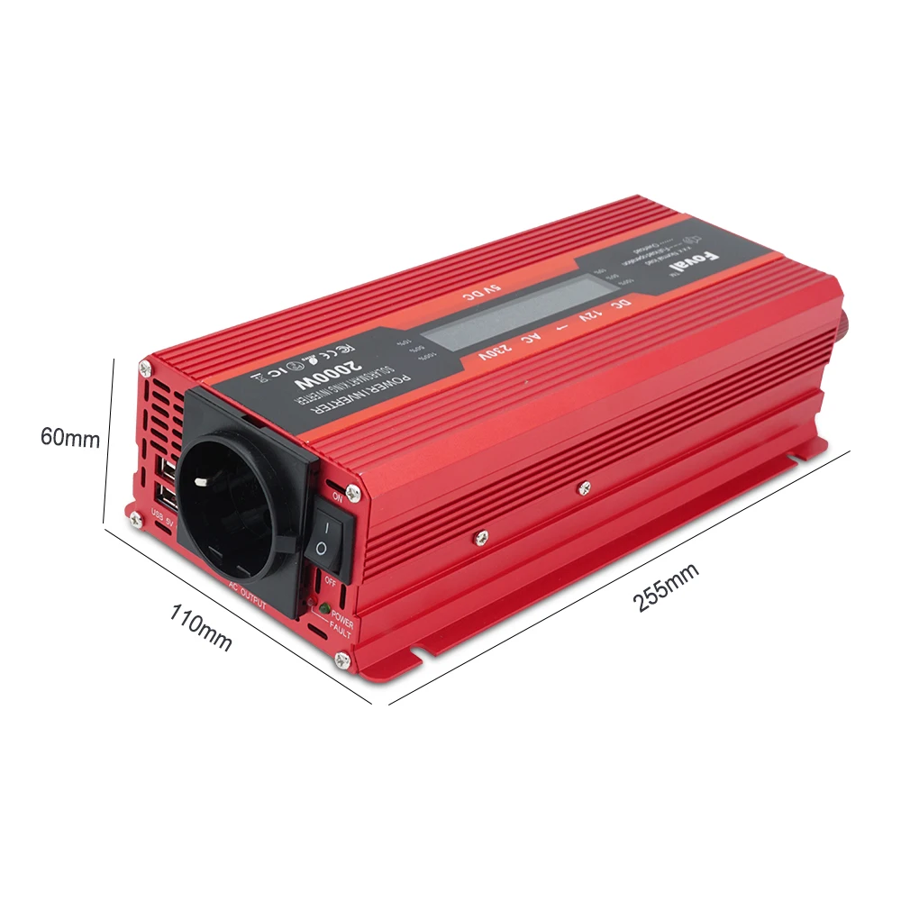 Автомобильный инвертор, высокочастотный трансформатор с ЖК-дисплеем, 12 В DC в 220 В AC, 1500 Вт2000 Вт2600 Вт, преобразователь для кемпинга