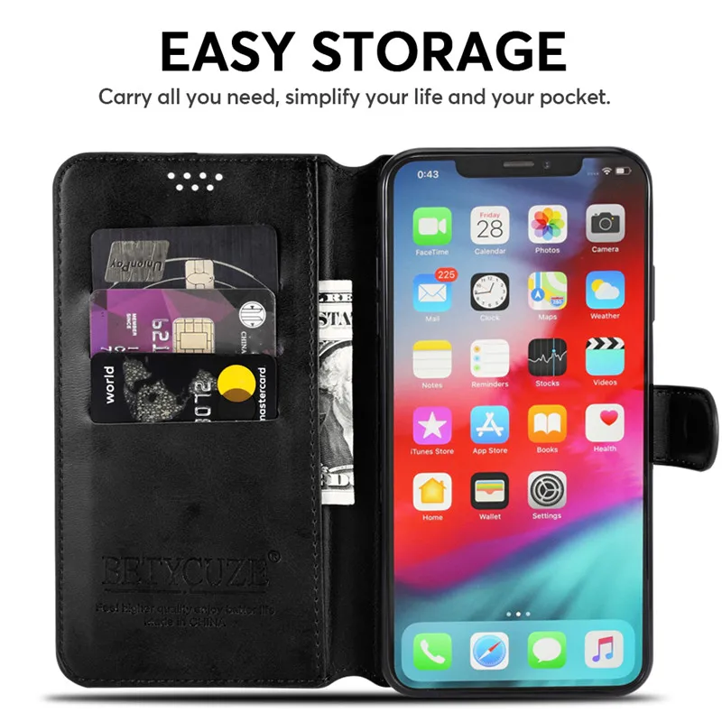 -Роскошный кожаный чехол-кошелек с отделением для карт
