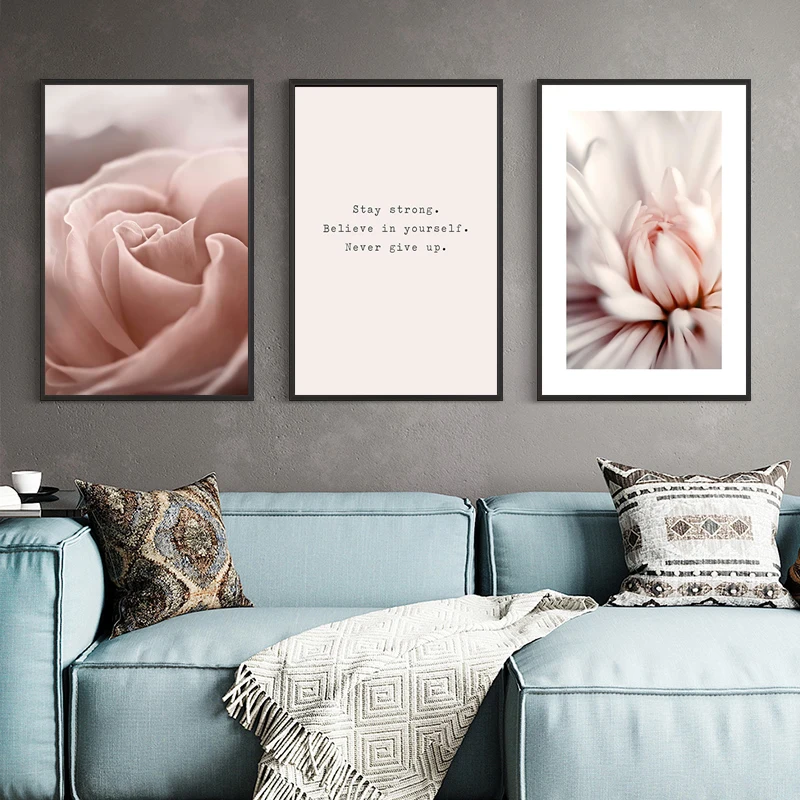 Постер с изображением розовых и белых цветов, минималистичный рисун...