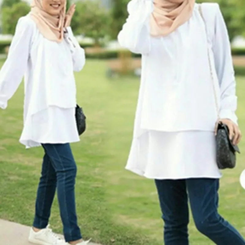 2022 женские топы, блузка, рубашка, туника с длинным рукавом, мусульманская Мода, Женский Топ, повседневные однотонные рубашки, блузы, весна, Новинка