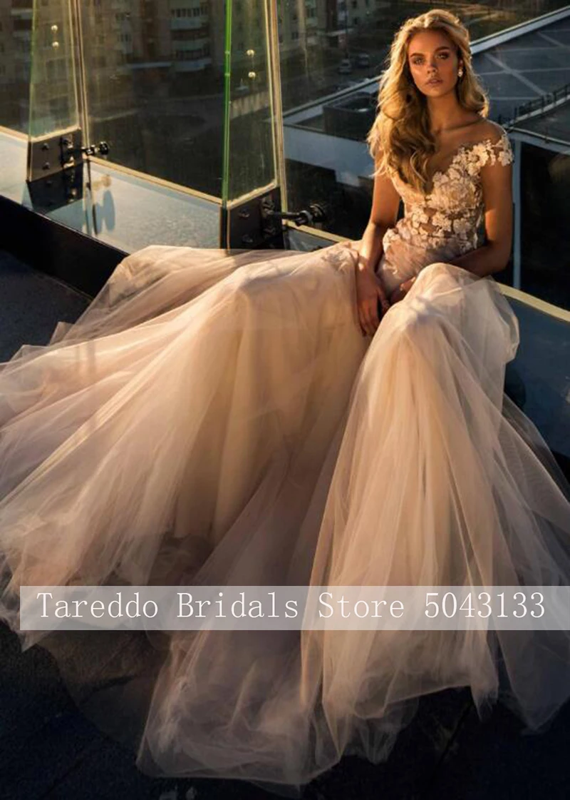 Новое поступление, пляжные свадебные платья, Кружевная аппликация цвета слоновой кости, а-силуэт, свадебное платье в стиле бохо, принцесса, искусственное платье 2021