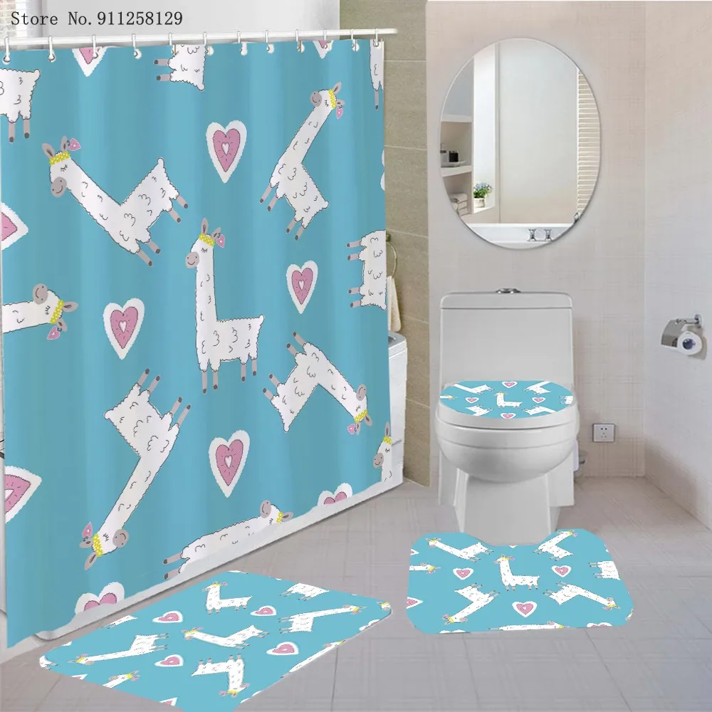 4 предмета в комплекте из шерсти альпаки занавесок для душа с мультяшным животным "ковер крышка Туалет Обложка коврик для ванной Ванная комната из исинской глины для украшения
