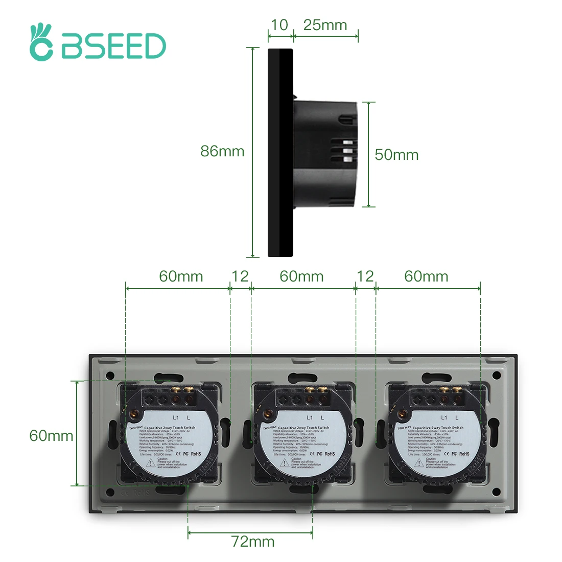 Настенные сенсорные переключатели Bseed, 3 комплекта, двухсторонние сенсорные переключатели света, стандарт ЕС, переключатель включениявыключения лестницы Светильник светкой