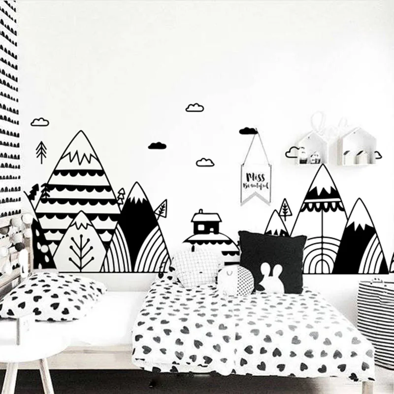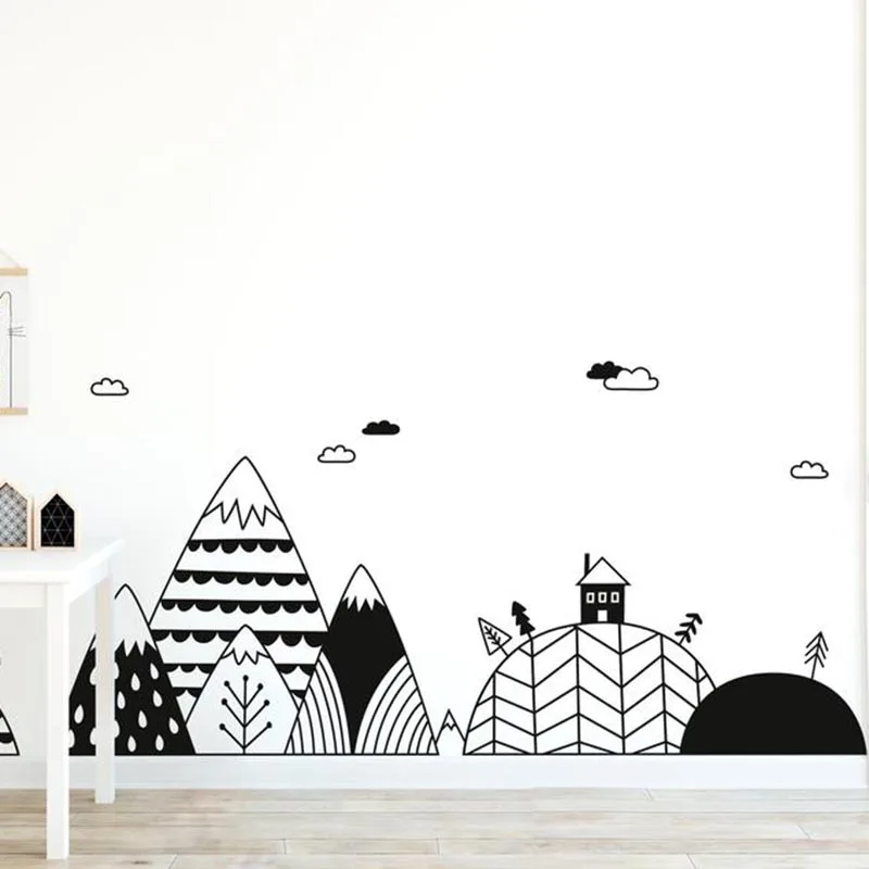Большой Boho горы дерево Наклейка Настенная облака в детской комнате джунгли скандинавский горный холм дом стены наклейка игровая
