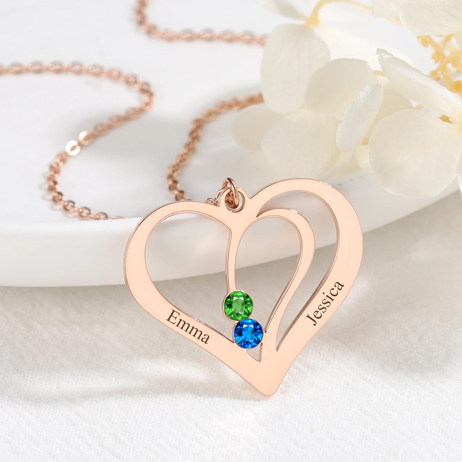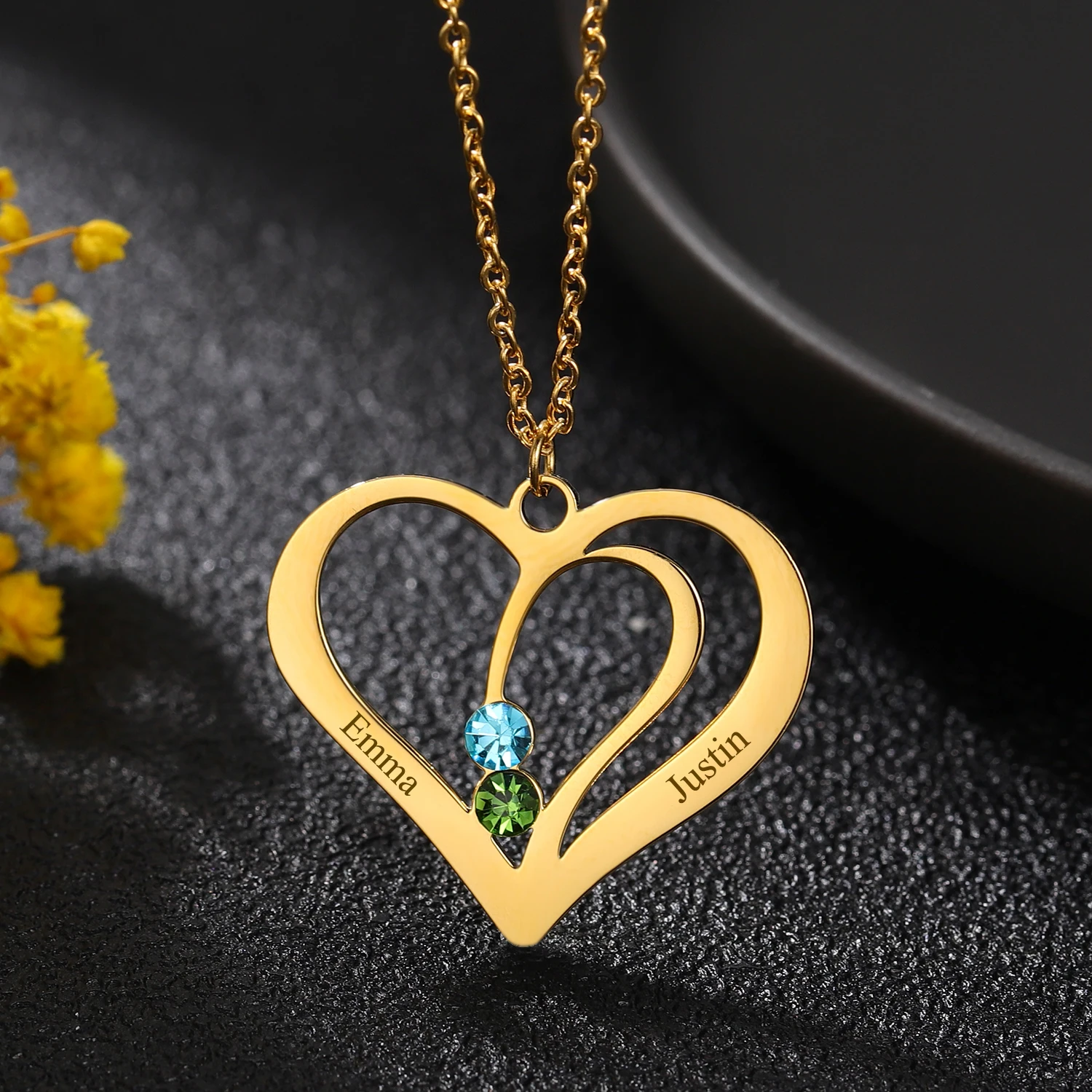 Индивидуальное ожерелье с двойным кулоном в форме сердца, 2 камня п...