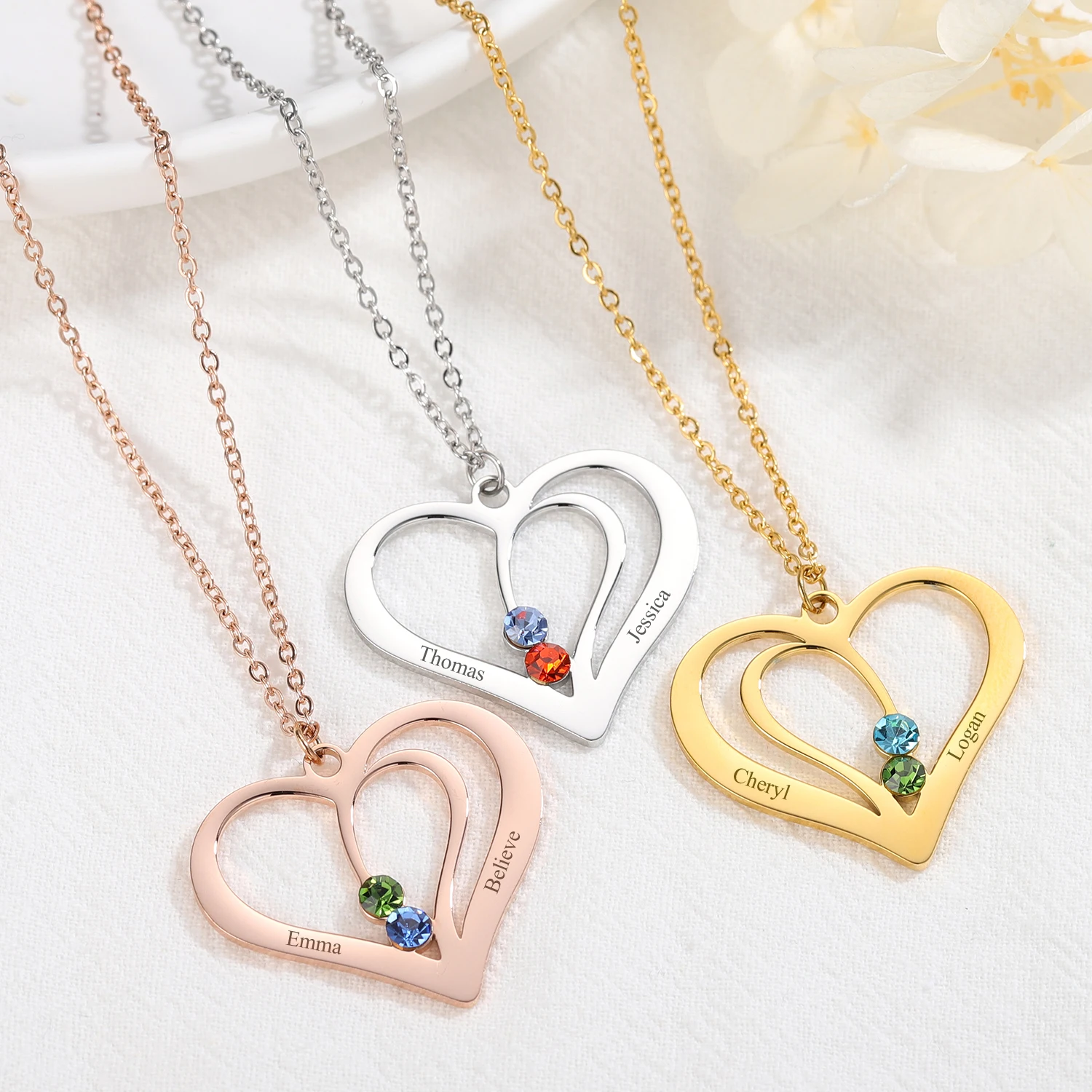 Индивидуальные Подвески с именем по месяцу рождения, персонализированное ожерелье с именем сердца, гравировка, золотые ювелирные изделия из нержавеющей стали для женщин, очаровательные подарки