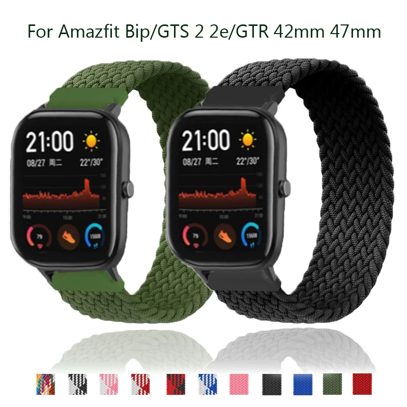 Ремешок нейлоновый для часов Amazfit GTS 2 2eBip Lite, эластичный браслет GTR 42 мм 47 мм Stratos 2 solo, 20 мм22 мм