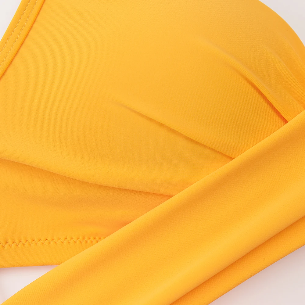 Женский купальник-бикини SEASELFIE, однотонный, ярко-желтый, в рубч...