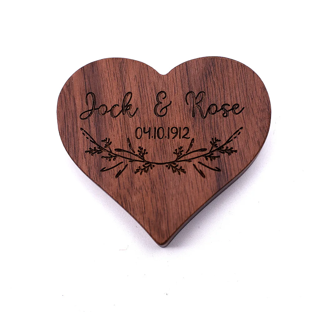 На заказ Гравировка на дереве коробка для колец в форме сердца, сва...