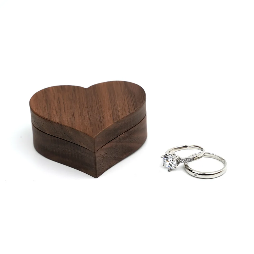 Персонализированные Черный Орех твердой древесины любящее сердце Форма кольцо коробка Мини Деревянный органайзер для ювелирных изделий Дисплей чехол Портативный ящики для хранения