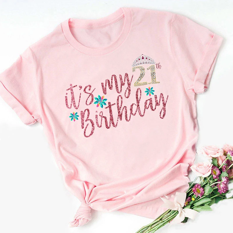Футболка для девочек от 20 до 4 лет, костюм на день рождения с принтом короны, женская футболка с графическим принтом, летняя футболка, женские розовые Топы