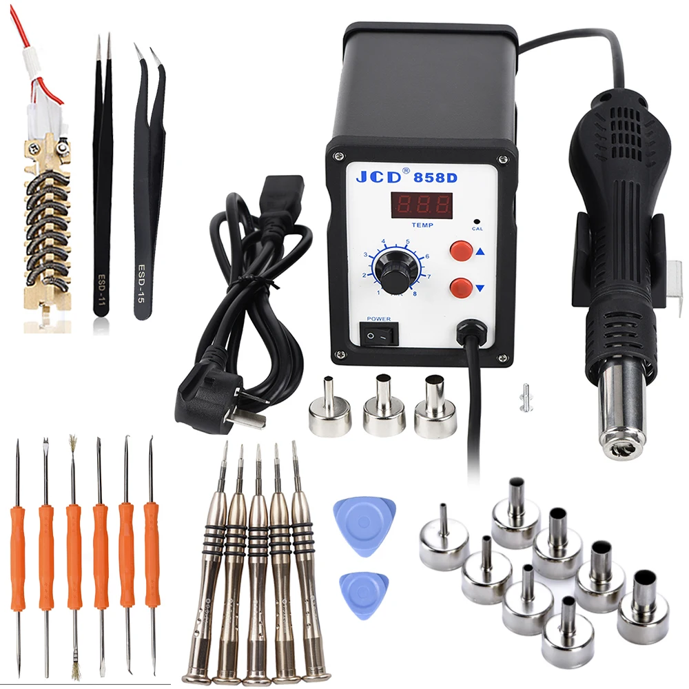 Паяльная станция JCD 858D, 750 Вт, 220 В, 110 В, светодиодный цифровой фен, свинцовый пистолет, Сварочная паяльная станция, инструмент для ремонта BGA SMD