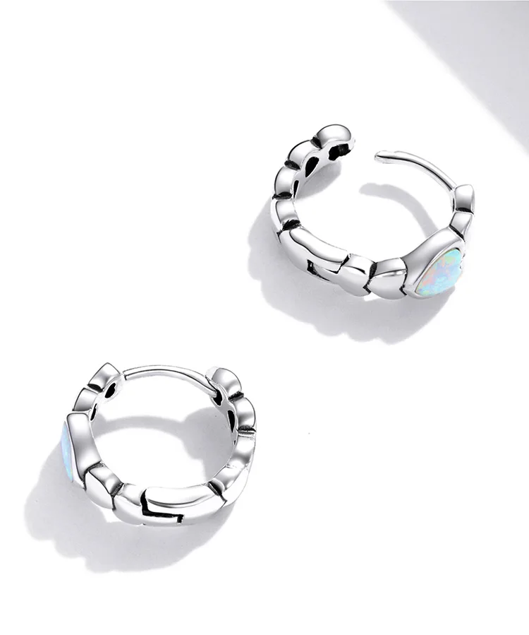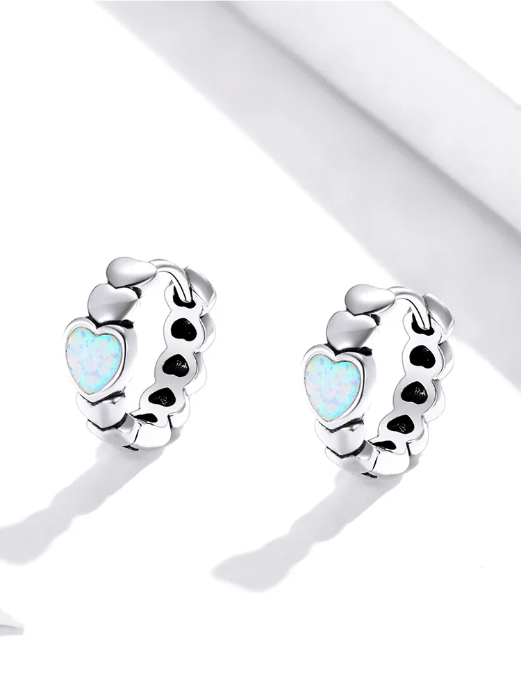 Серьги-кольца женские из серебра 100% пробы в форме радужного сердца