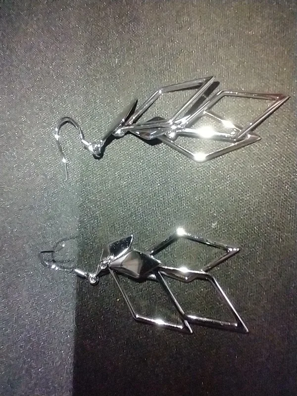 Серьги, как они выглядят. Они прибыли примерно через 20 дней в идеальном состоянии. Они кажутся приемлемого качества. Будем надеяться, что они хороши и долговечны. Недостаток в том, что иногда края поворачиваются и остаются такими, если не собирать их.