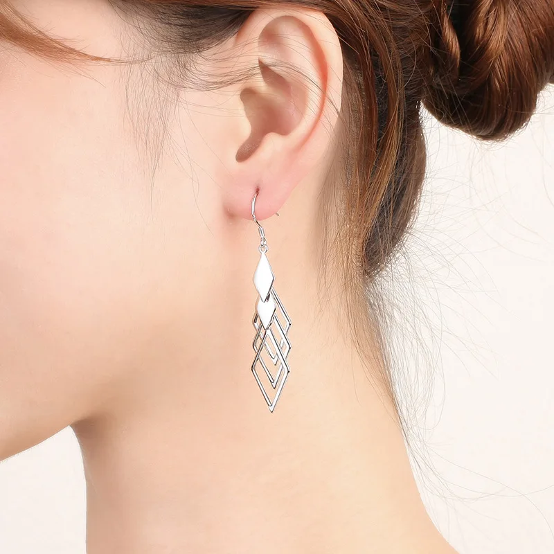 Женские серьги-кисточки из серебра 925 пробы, с мозаикой из ромба