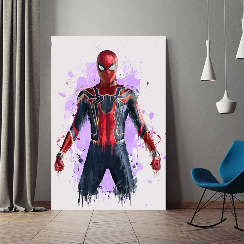 Акварельная картина Marvel Мстители Железный человек Человек-паук, холст, Постер и печать, Настенная картина, картина для декора гостиной