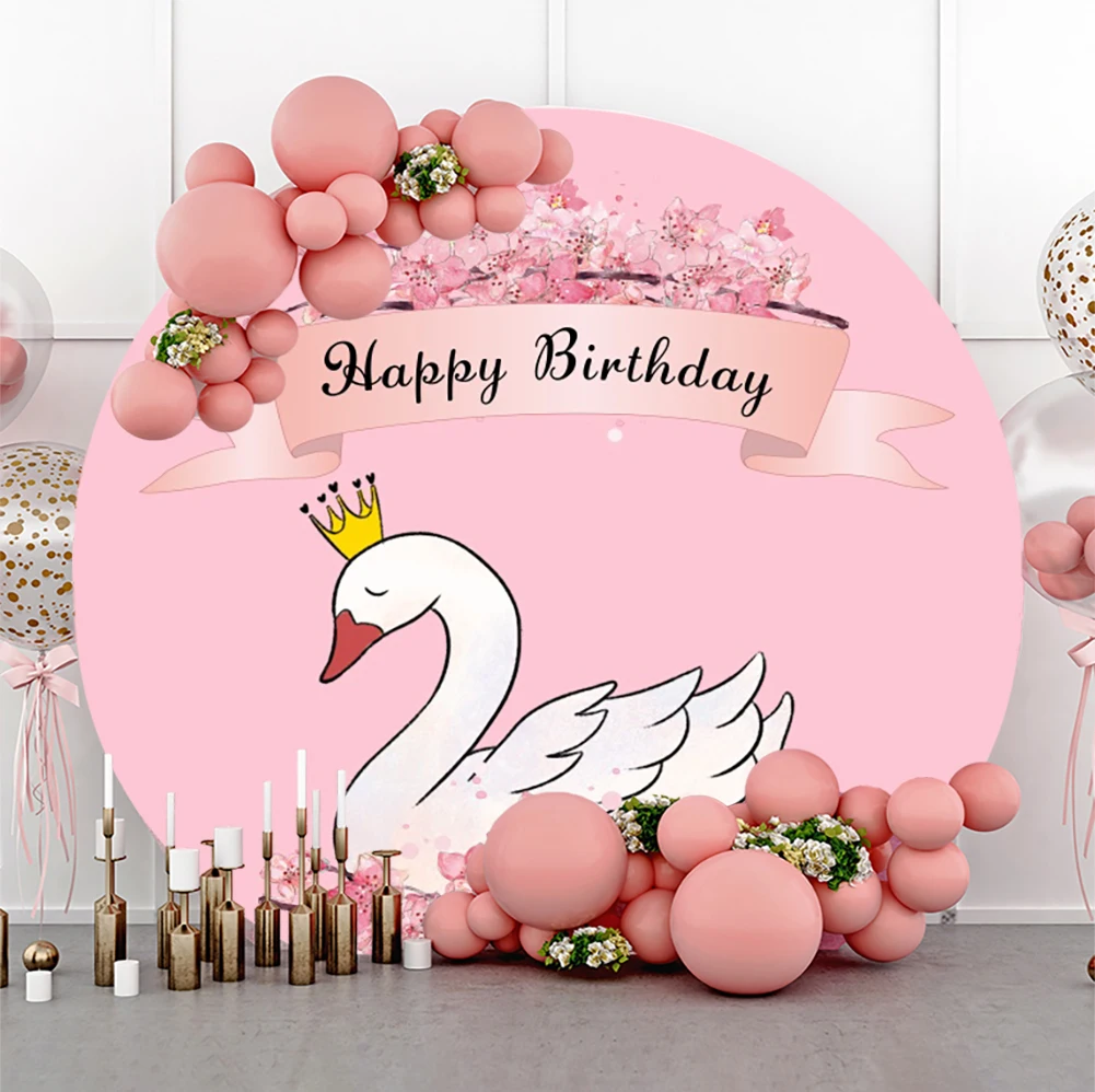Laeacco розовый круглый задний план для фотографии "Принцесса Лебедь" С Днем Рождения вечерние заказной круг фото фон для фото студии
